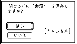 次に、メニューバーの「ファイル」から「終了」を選択して、一旦終了しておく。この とき次のようなウインドーが出てきたら、「いいえ」をクリックする。