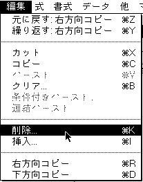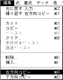 次にB126からG126を選択して、「編集」メニューから「右方向コピー」を選択すると、次のようになる。
