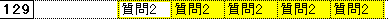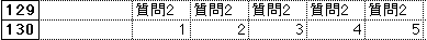 B129のセルに、「質問2」とタイプする。数字の「2」は、必ず半角の数字にすること(キーボードの右端の数字キーを使うと確実である)。次に、B129のセルからF129までのセルを選択し、「編集」メニューから「右方向コピー」を選択する。