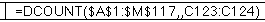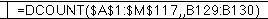 計算式の中で、$A$1:$M$117 と B123:B124 との間に、2つのコンマがあるが、これはコンマとコンマとの間に入るべきものが省略されているからである。省略されたものがなにであるかは、ここでの集計には関係ないので、説明しない。
