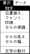そして、リターンキー押すと、B128のセルに「0.3362」という数字が現れる。このままでは見にくいので、B128のセルが選択されていること確認の上、書式メニューから「数字...」メニューを選択する。