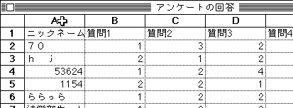 「編集」メニューから「右方向コピー」を選択して、その内容が、「質問3」になるようにする。すると、次のような表ができる。